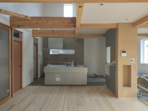 今日は、太陽光システム工事も進められました。蓄電池の設置後は、太陽光で発電した電気を自家消費して、余った分は、蓄えられるようになります。なるべく買う電気を抑えていくというシステムになります。