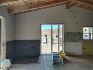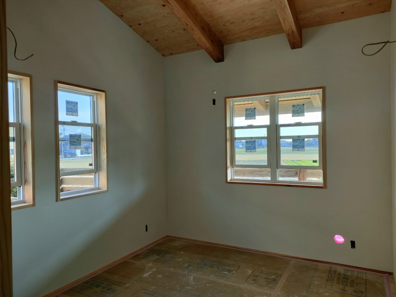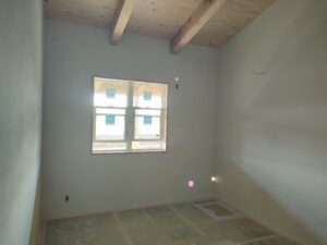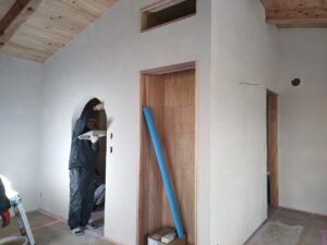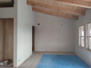 みやま市モデルハウス新築工事の現場では、内部の塗り壁工事が無事に完了しました。