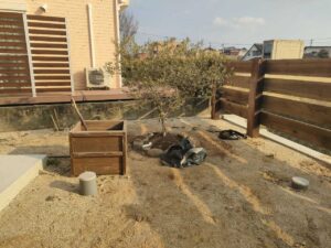 まだまだ、植栽工事はありますが、もう少し他の外構工事が進んでからになります。盛りだくさんの外構工事。ステ木な庭園が待っていますよ。