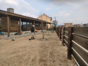 みやま市モデルハウス新築工事の現場では、植栽工事が進みました。