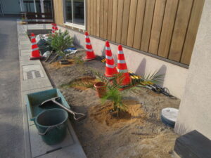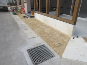 外構工事は、村崎さんが玄関ポーチ前に天然芝を張りこんでくれました(≧▽≦) そして植栽も!この植栽の廻りは小栗石を敷きならべる予定です。おうちの前のスペースがグッとおしゃれスペースへと生まれ変わります(*^▽^*) K様、明日も引き続き内部の家具工事や残工事を進めます。中庭の人口芝張りも随時進めますね。最後まで引き続きよろしくお願い致します。