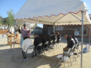 本日、11時からの地鎮祭でしたがお天気が良くて良かったです!準備が整い次第、神事の開始です。