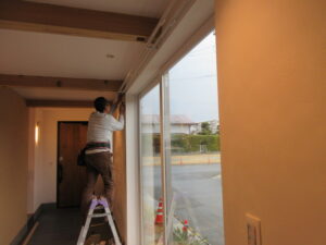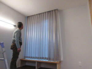 カーテン工事は、Tけし美装のM籐さんです!今日はリビング、寝室、玄関、脱衣室等の5箇所のカーテン及びロールスクリーン、シェードの取付を行ってくれました。カーテンが付くと完成間近な感じですよね(*^▽^*) 13日からの引っ越しまでに残工事完了をしっかりとやります。