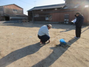 柳川市 T様邸新築工事 ですが今日は明日からの杭工事前の打合せと杭芯出しをやってもらいました!
