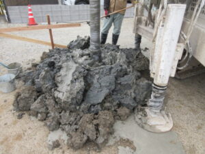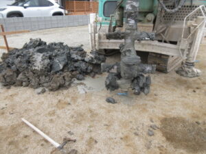 杭工事は、(株)Tヨダさんです。今日は3人態勢で進んでいます。今日は12本の打設を終わらせてくれました。昨日は、朝からの段取りでスタートが遅くなりましたので7本でしたので。今日で19本。金、土、月で残り34本打設、火曜日の残土搬出と重機搬出で完了となります。T様、引き続きよろしくお願い致します。
