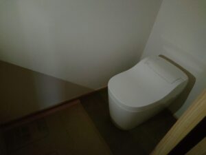 エコキュートの配管繋ぎ工事、トイレの取付が完了しました。