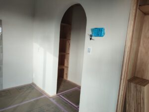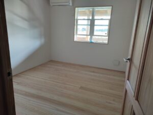 みやま市モデルハウス新築工事の現場では、内部の仕上げ工事で、建具取付工事、造作家具取付工事、荒掃除が進みました。