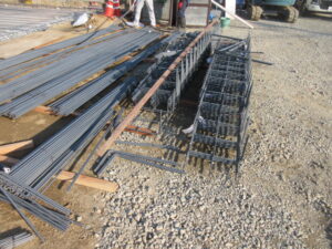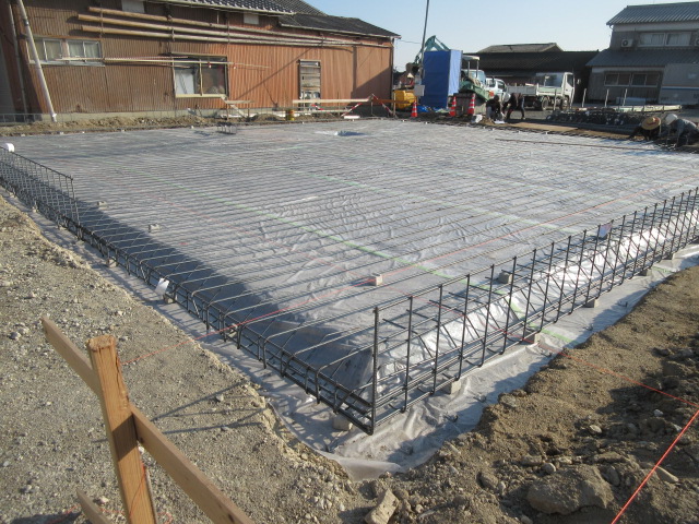 防湿フィルム敷きが終わり次第、配筋工事へと進みます。ユニット鉄筋が主流になっていますね。工場で溶接加工して組んでくるので現場作業は手間が省けます(*^▽^*)明日も鉄筋工事を進めていきます。24日(火)午前中に瑕疵保険の配筋検査。午後から基礎排水管逃げ(Hラカワさん)を行い、25日(水)ベタ基礎コンクリート打設の予定で進めています。コンクリート打設は、雨天の心配があるときは中止、延期となります。T様、引き続きよろしくお願い致します。