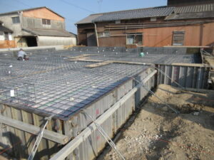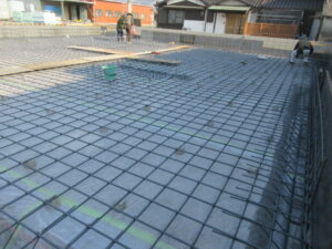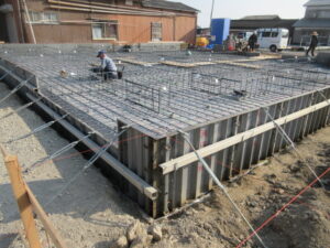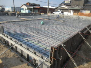 基礎工事は、K田工業さん。今日も4人態勢で進めてくれています。朝から立上り筋の墨出しをして、立上り筋が次々とならべられていきます。今の鉄筋工事の主流はユニット鉄筋と言って工場で箇所ごとに長さや配筋量などを加工、溶接止めまでしてきます。それを指示書にそって配置していくとこんな感じで仕上がります。補強筋などは現場結束となりますが(*^▽^*) 現場作業が随分楽になって工期短縮になります。ベタ基礎コンクリート打設は今のところ予定では25日(水)の予定です。T様、引き続きよろしくお願い致します。