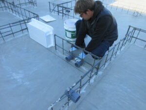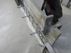 (株)HラカワさんにN田さんが立上りコンクリート貫通スリーブ入れをやってくれました!そして、K田工業さんのお三方が朝から枠の墨出しをやってくれました。