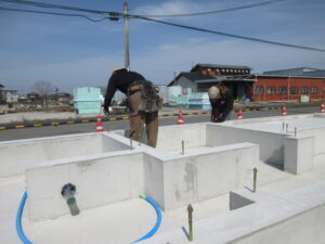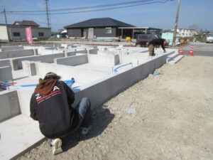 今回のT様邸の棟梁は、K野大工さんご夫婦です!19日から土台を敷く前に基準となる墨を基礎に付けていきます!