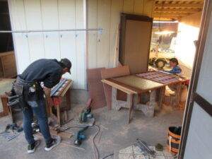 最後には、村崎さん、T中大工さんコンビで座敷廻りの障子や襖の開閉が固い部分を調整までしてもらいました!障子が12枚。襖が4枚。トイレのドアが1枚と💦 T様も喜んでくれました(≧▽≦) 予定どおり明日からクロス貼工事が始まります!T様、あと二日間!ご辛抱願います。
