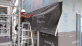 外部は、足場シートが架けられました。全景が見えづらくなりましたが、これは、安全対策と近隣対策となっていますので、ご了承ください。