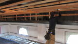 そして外壁工事ですがいよいよ軒天張り工事が完了しました!1階バルコニー下端の軒天、北側の下屋廻りの軒天張り完了です。明日は、職人さんたちはお休みとの事でしたが、日曜日も仕事してくれるようです。オーバーハング水切り入れからいよいよ外壁サイディング張りが始まりそうです!T様、引き続きよろしくお願い致します。